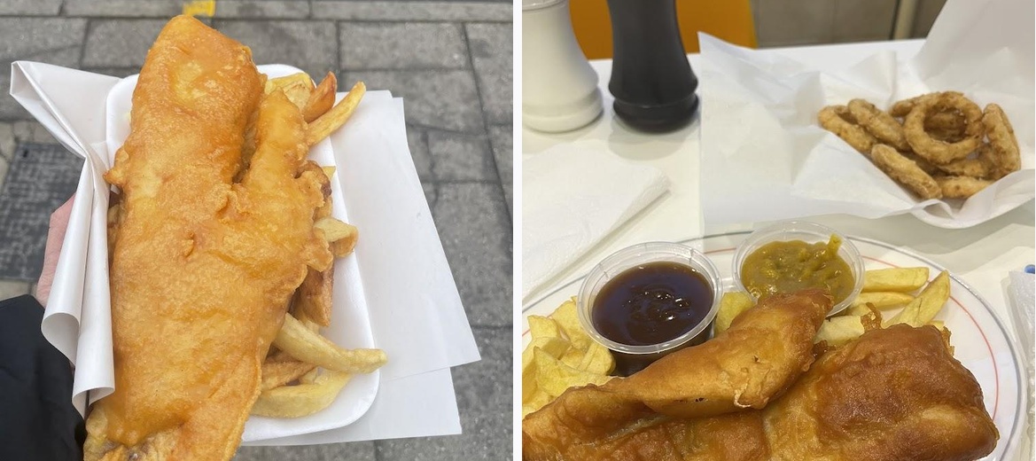 Definitely try the battered sausage—it's a crowd favorite. The curry sauce and gravy also complement the cod and chips perfectly.